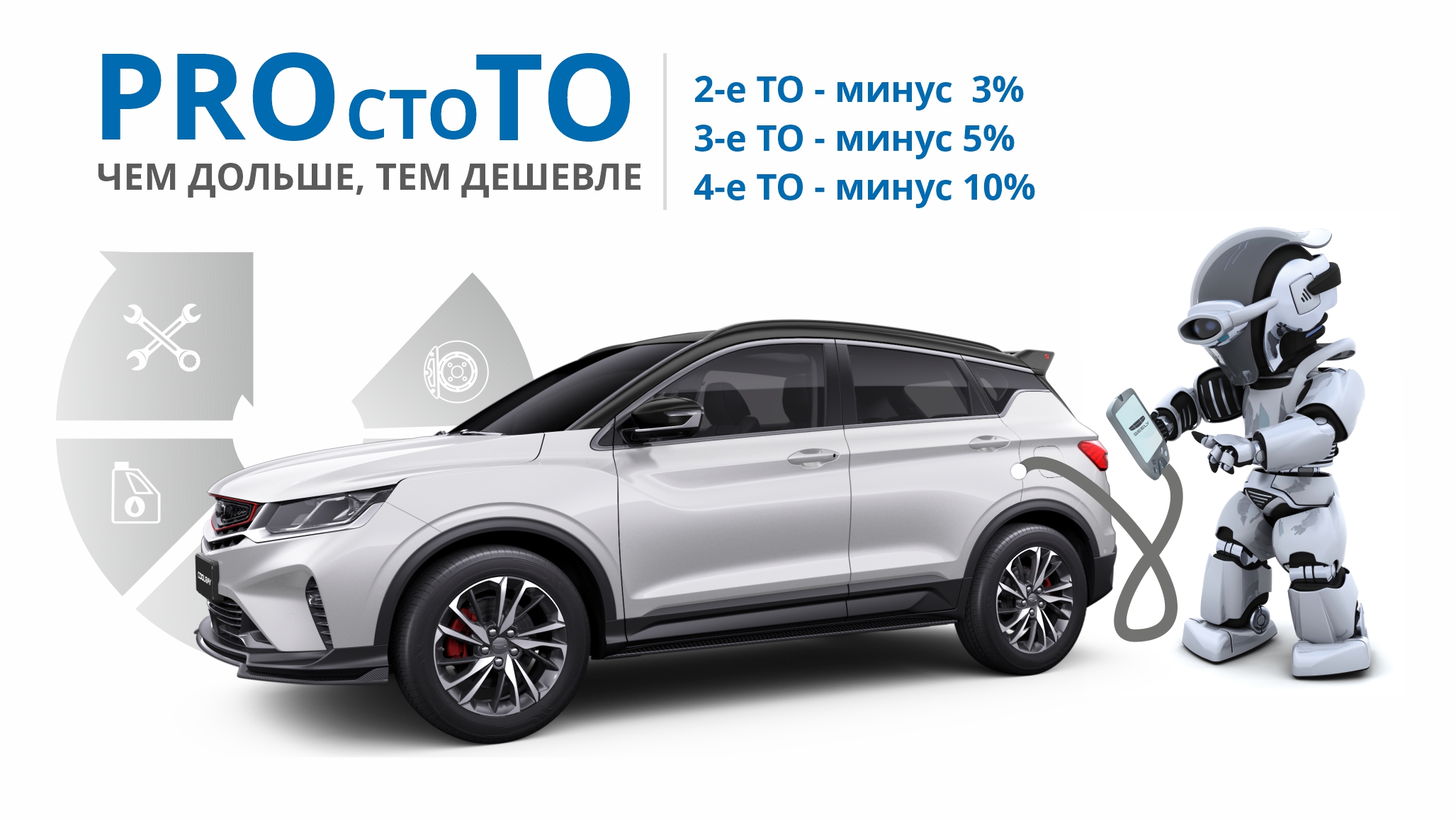 Для всех владельцев автомобилей Geely мы подготовили выгодную акцию на техническое обслуживание автомобиля: